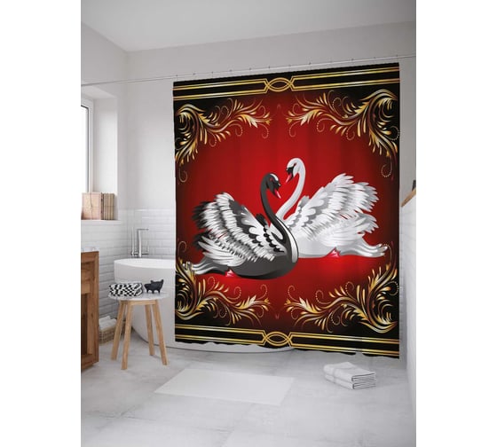 Штора (занавеска) для ванной JoyArty "Два лебедя" из сатена, 180х200 см с крючками, sc_37337