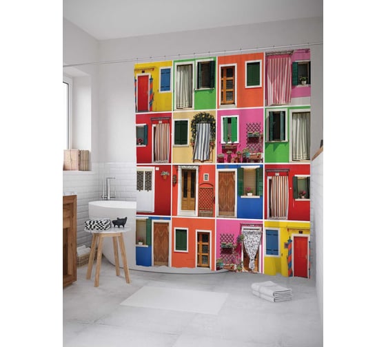Штора (занавеска) для ванной JoyArty "Дверные отличия" из сатена, 180х200 см с крючками, sc_2755