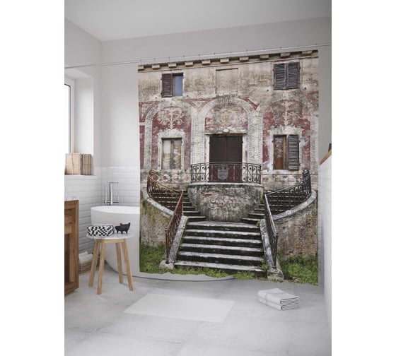 Штора (занавеска) для ванной JoyArty "Дыхание прошлого" из сатена, 180х200 см с крючками, sc_9207