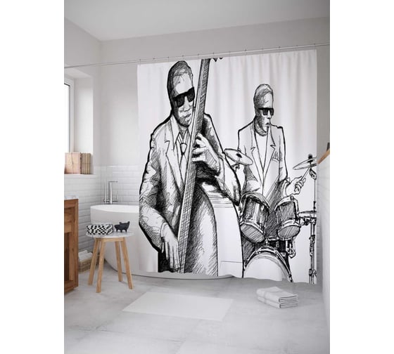 Штора (занавеска) для ванной JoyArty "Джаз не помешает" из сатена, 180х200 см с крючками, sc_16681