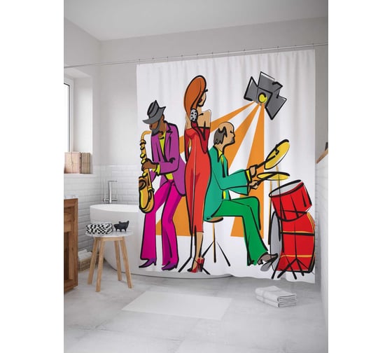 Штора (занавеска) для ванной JoyArty "Джазовый восторг" из сатена, 180х200 см с крючками, sc_14240
