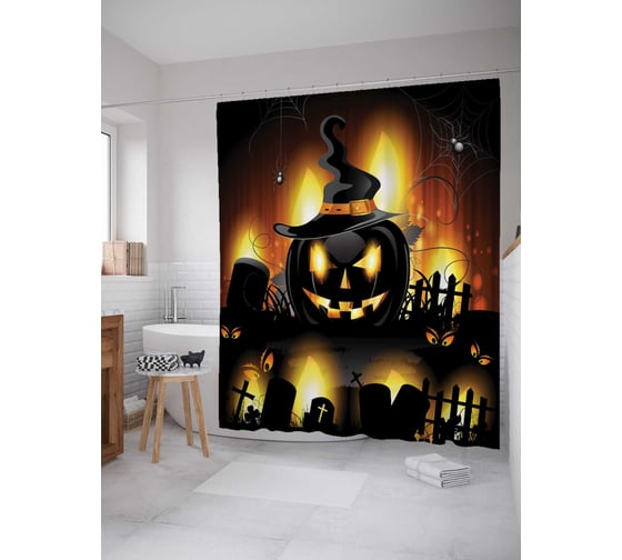 Сопутствующие товары для шторки-занавески JOYARTY Джек-фонарь на кладбище из сатена, 180х200 см с крючками