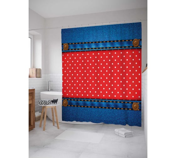 Штора (занавеска) для ванной JoyArty "Джинсы со вставкой" из сатена, 180х200 см с крючками, sc_17163