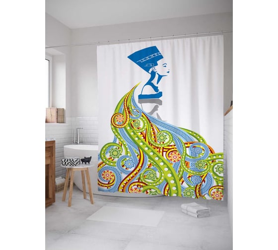 Штора (занавеска) для ванной JoyArty "Египетская царица с лентами" из сатена, 180х200 см с крючками, sc_15224