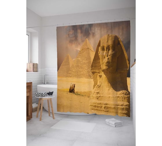 Штора (занавеска) для ванной JoyArty "Египетский сфинкс" из сатена, 180х200 см с крючками, sc_15231