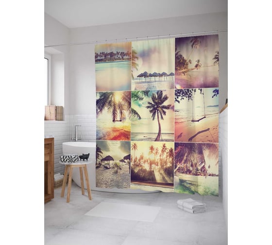 Штора (занавеска) для ванной JoyArty "Экзотические фантазии" из сатена, 180х200 см с крючками, sc_18447