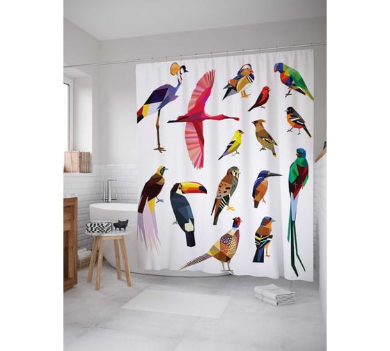 Сопутствующие товары для шторки-занавески JOYARTY Экзотические птицы из сатена, 180х200 см с крючками