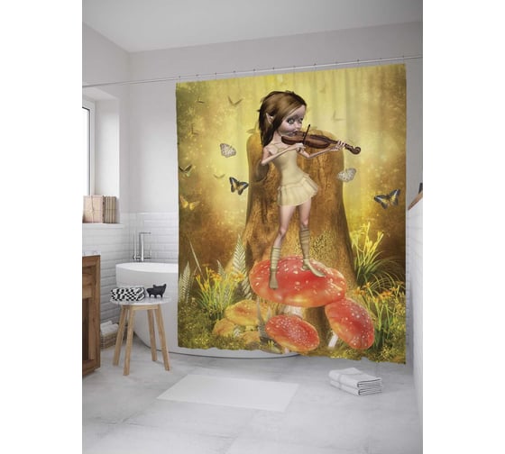 Штора (занавеска) для ванной JoyArty "Эльфийская песня" из сатена, 180х200 см с крючками, sc_11945