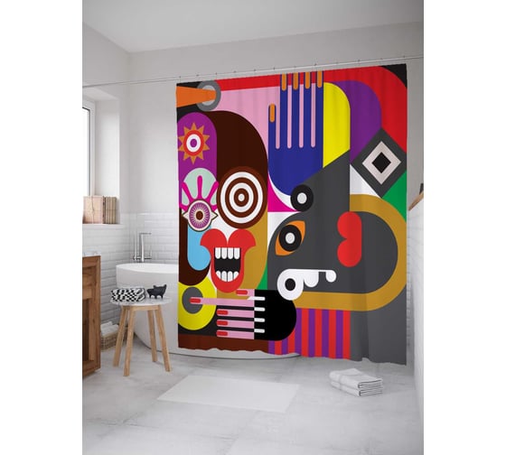 Штора (занавеска) для ванной JoyArty "Эмоциональная фантазия" из сатена, 180х200 см с крючками, sc_22210