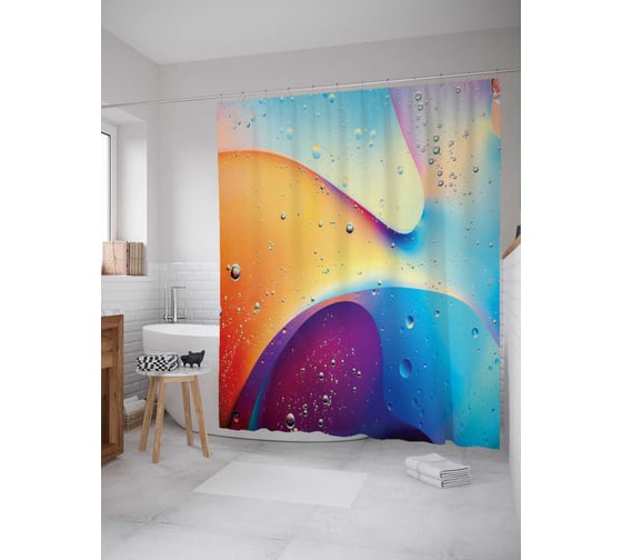 Штора (занавеска) для ванной JoyArty "Энергетическая влажность" из сатена, 180х200 см с крючками, sc_22211