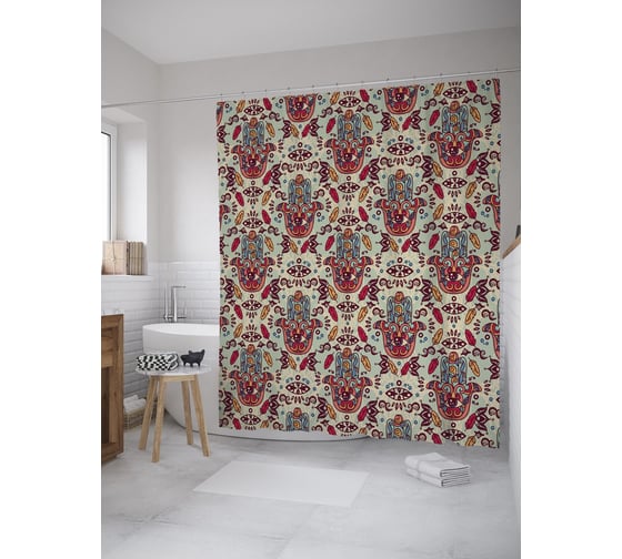 Штора (занавеска) для ванной JoyArty "Этническая хамса" из сатена, 180х200 см с крючками, sc_52568
