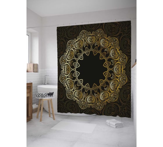 Штора (занавеска) для ванной JoyArty "Этническая мандала" из сатена, 180х200 см с крючками, sc_33849