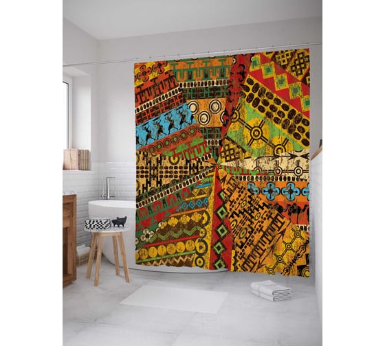 Штора (занавеска) для ванной JoyArty "Этнические рисунки" из сатена, 180х200 см с крючками, sc_36531