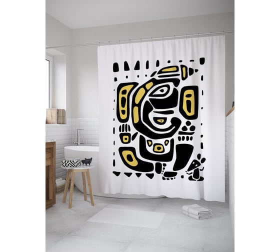 Штора (занавеска) для ванной JoyArty "Этнический Ганеша" из сатена, 180х200 см с крючками, sc_59849
