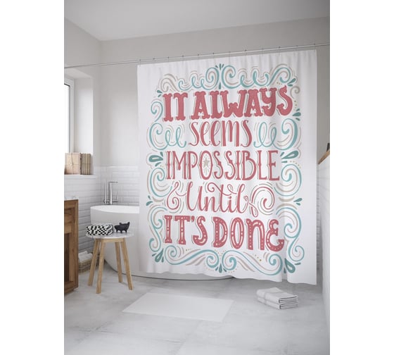 Штора (занавеска) для ванной JoyArty "Это всегда выглядит невозможным, пока не сделаешь" из сатена, 180х200 см с крючками, sc_61647