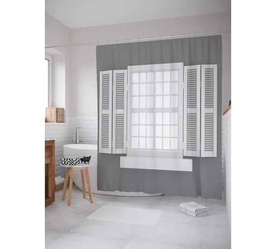 Штора (занавеска) для ванной JoyArty "Европейское окно" из сатена, 180х200 см с крючками, sc_14214