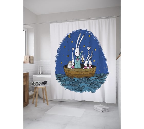 Штора (занавеска) для ванной JoyArty "Ежик и зайцы в лодке" из сатена, 180х200 см с крючками, sc_59816