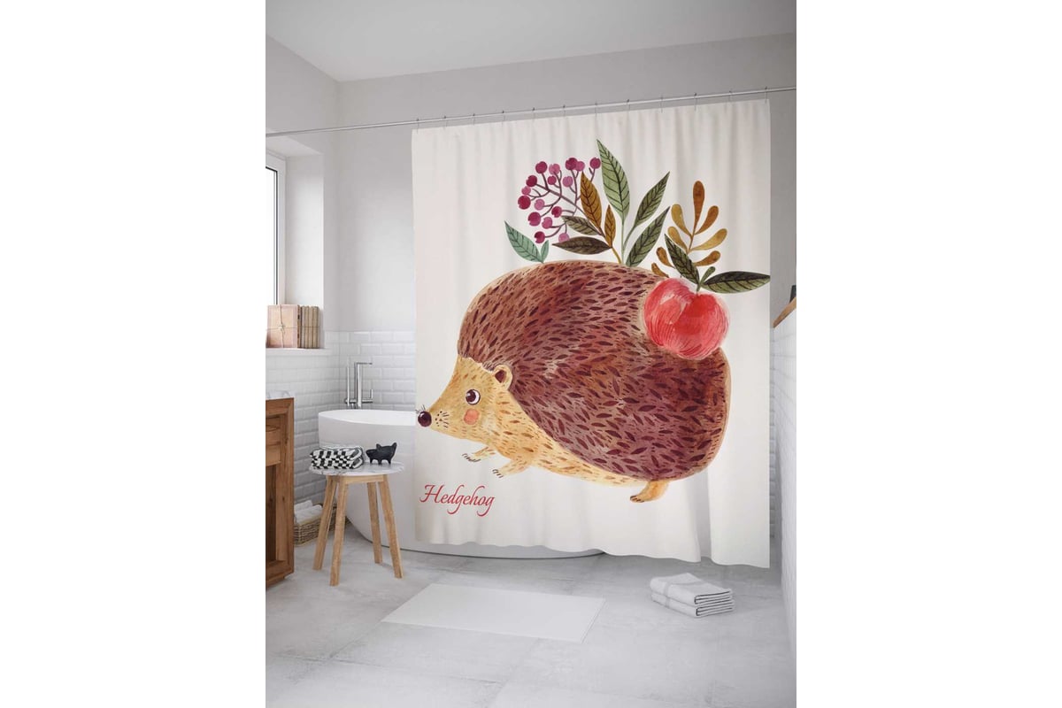 Сопутствующие товары для шторки-занавески JOYARTY Ежик с яблоком из сатена, 180х200 см с крючками