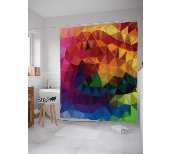 Штора (занавеска) для ванной JoyArty "Фантастический витраж" из сатена, 180х200 см с крючками, sc_22200