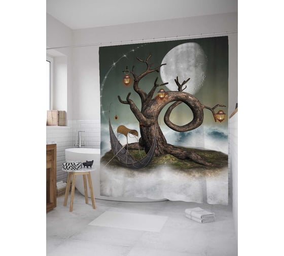 Штора (занавеска) для ванной JoyArty "Фантазийное дерево" из сатена, 180х200 см с крючками, sc_32904