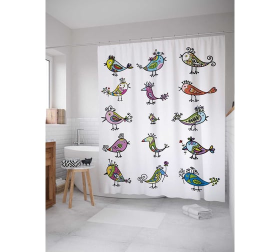 Сопутствующие товары для шторки-занавески JOYARTY Фантазийные птицы из сатена, 180х200 см с крючками