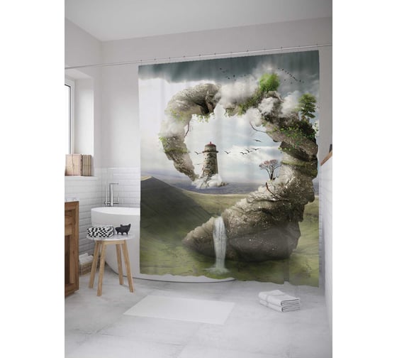 Штора (занавеска) для ванной JoyArty "Фата Моргана" из сатена, 180х200 см с крючками, sc_28555