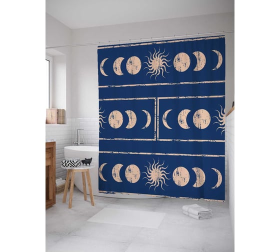 Штора (занавеска) для ванной JoyArty "Фазы луны" из сатена, 180х200 см с крючками, sc_18917