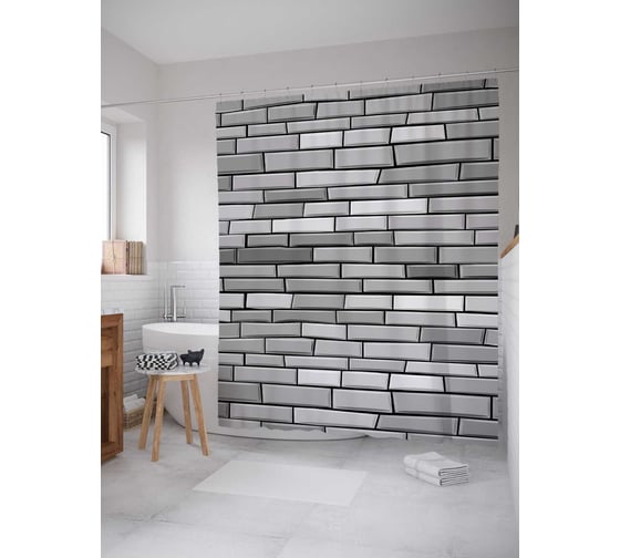 Штора (занавеска) для ванной JoyArty "Фигурная неровность" из сатена, 180х200 см с крючками, sc_13554