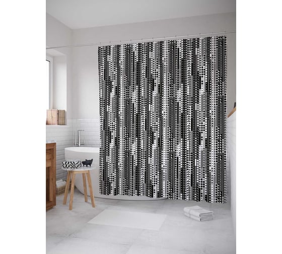 Сопутствующие товары для шторки-занавески JOYARTY Фигуры в полосках из сатена, 180х200 см с крючками