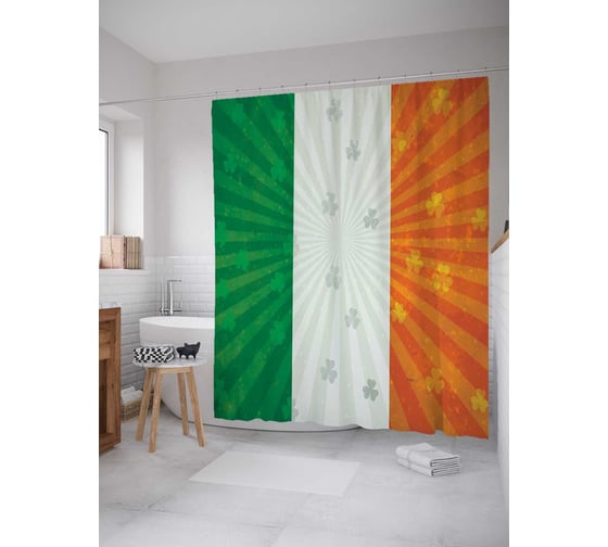 Штора (занавеска) для ванной JoyArty "Флаг фантазий" из сатена, 180х200 см с крючками, sc_7379