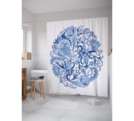 Штора (занавеска) для ванной JoyArty "Флористический круг" из сатена, 180х200 см с крючками, sc_63109