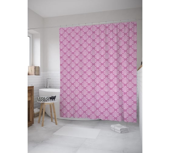 Штора (занавеска) для ванной JoyArty "Флористика дамасского узора" из сатена, 180х200 см с крючками, sc_61570