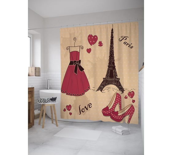 Штора (занавеска) для ванной JoyArty "Французское платье" из сатена, 180х200 см с крючками, sc_39392