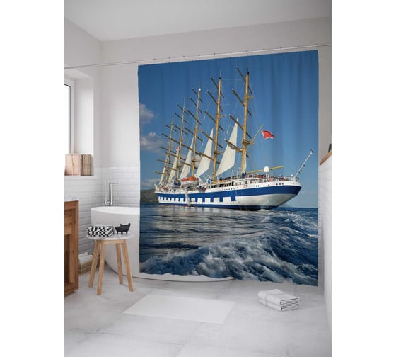 Штора (занавеска) для ванной JoyArty "Фрегат в пути" из сатена, 180х200 см с крючками, sc_1439