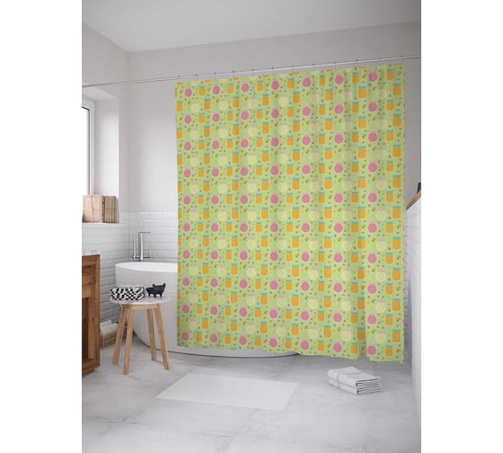 Штора (занавеска) для ванной JoyArty "Фруктовые грядки" из сатена, 180х200 см с крючками, sc_72714