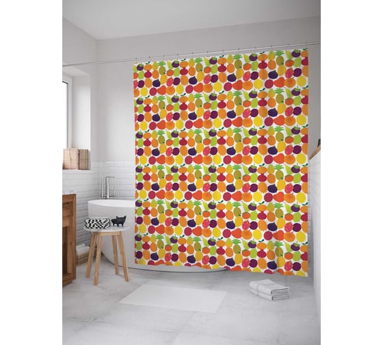 Сопутствующие товары для шторки-занавески JOYARTY Фруктовый сбор из сатена, 180х200 см с крючками