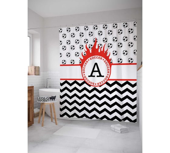 Штора (занавеска) для ванной JoyArty "Футбол Группа А" из сатена, 180х200 см с крючками, sc_5361