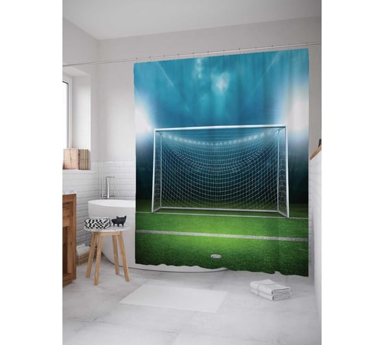 Штора (занавеска) для ванной JoyArty "Футбольные ворота" из сатена, 180х200 см с крючками, sc_17316