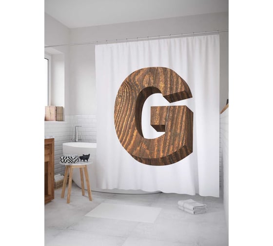 Штора (занавеска) для ванной JoyArty "G из дерева" из сатена, 180х200 см с крючками, sc_4532g