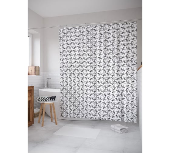 Сопутствующие товары для шторки-занавески JOYARTY Геометрическая сетка из сатена, 180х200 см с крючками