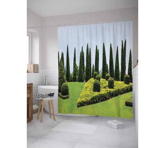 Штора (занавеска) для ванной JoyArty "Геометрические клумбы на газоне" из сатена, 180х200 см с крючками, sc_10340
