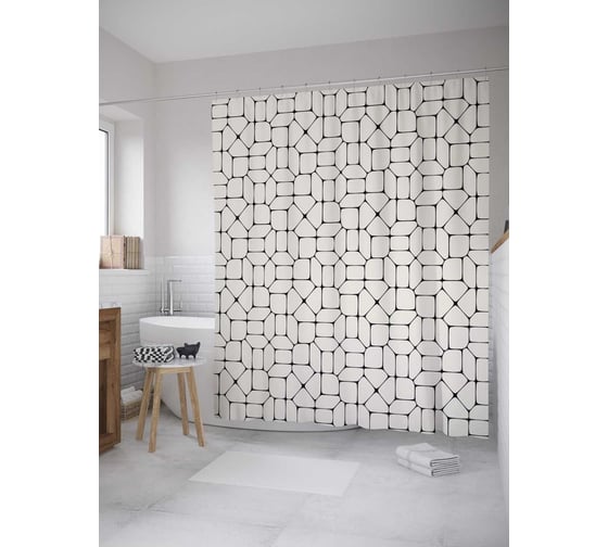 Штора (занавеска) для ванной JoyArty "Геометрические схемы" из сатена, 180х200 см с крючками, sc_34033