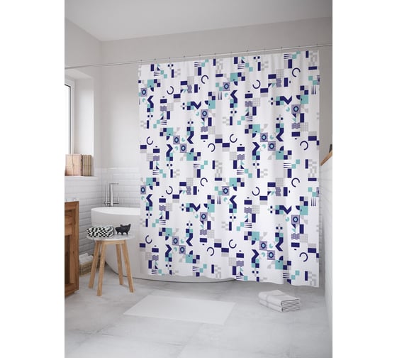 Сопутствующие товары для шторки-занавески JOYARTY Геометрический хаос из сатена, 180х200 см с крючками