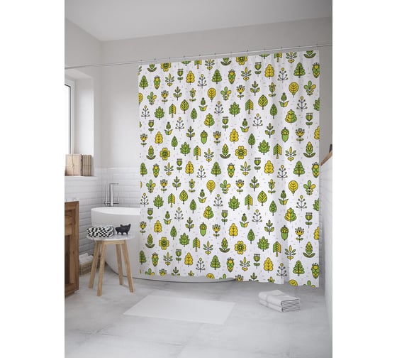 Сопутствующие товары для шторки-занавески JOYARTY Геометрический лес из сатена, 180х200 см с крючками