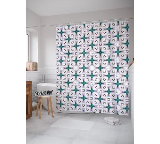 Сопутствующие товары для шторки-занавески JOYARTY Геометрический рис из сатена, 180х200 см с крючками