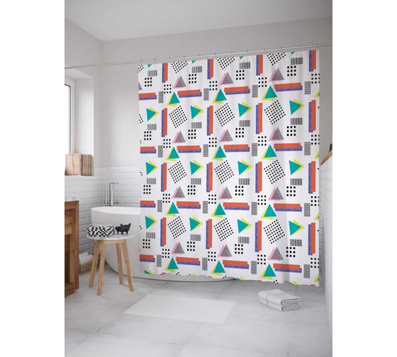 Сопутствующие товары для шторки-занавески JOYARTY Геометрический узор из сатена, 180х200 см с крючками