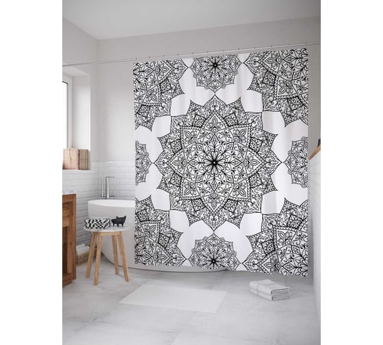 Штора (занавеска) для ванной JoyArty "Геометрическое любопытство" из сатена, 180х200 см с крючками, sc_21210