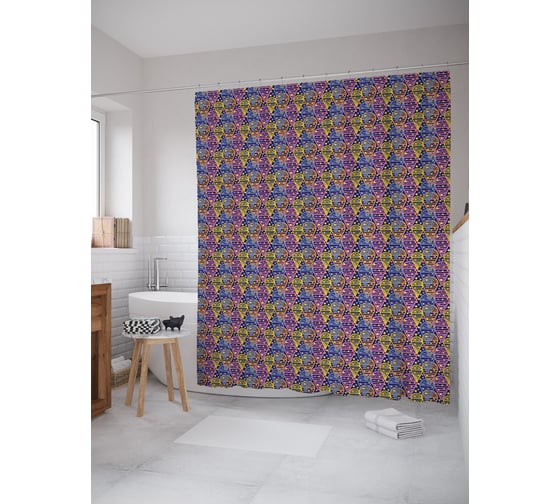 Сопутствующие товары для шторки-занавески JOYARTY Геометрическое мороженое из сатена, 180х200 см с крючками
