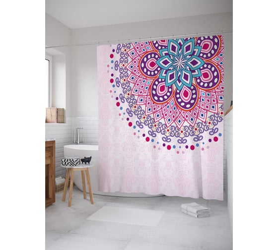 Штора (занавеска) для ванной JoyArty "Геометрия ажура" из сатена, 180х200 см с крючками, sc_29292