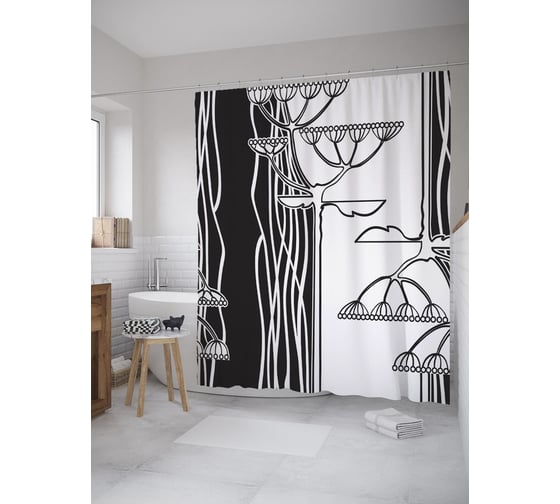 Сопутствующие товары для шторки-занавески JOYARTY Геометрия зонтичных растений из сатена, 180х200 см с крючками